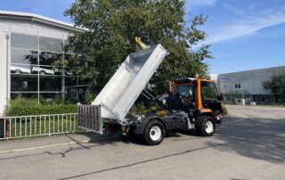 Der patentierte Abrollkipper AKL wird vorzugsweise im Garten- und Landschaftsbau, Tief- bzw. Straßenbau oder im kommunalen Bereich eingesetzt. Der Abrollkippanhänger ist ein LKW-Aufbau und kippbar in alle drei Wunschrichtungen (wählbar). Er ermöglicht effiziente Baustellenlogistik durch variable Aufbauten und die kurze, und damit wendige Bauform. Aufgrund seines geringen Eigengewichts verfügt der AKL über eine hohe Nutzlast.